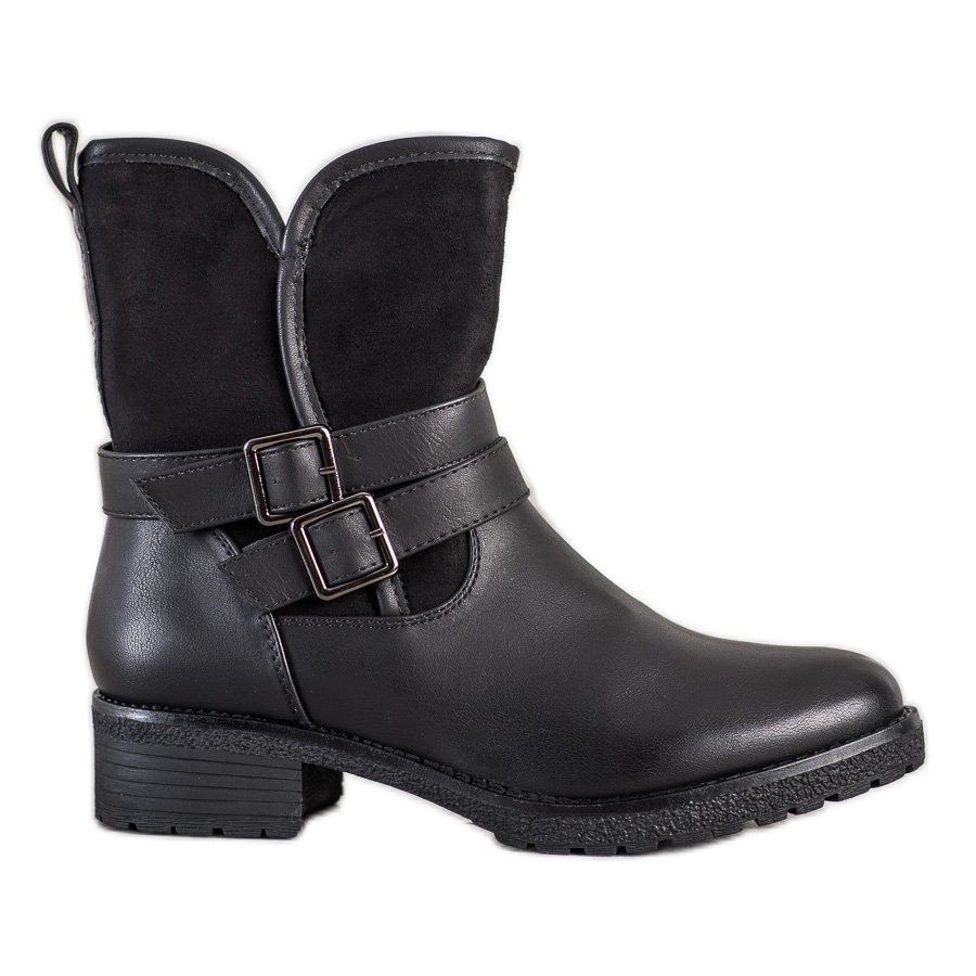 Den 4 cm höga platta hälen gör stylingen inte bara moderiktig, utan också bekväm, vilket kommer att uppskattas av varje aktiv kvinna. Den inbyggda, förstyvade hälen ger stabilitet, och dragkedjan och det dekorativa spännet är element som framhäver rockstilen hos dessa arbetare.
