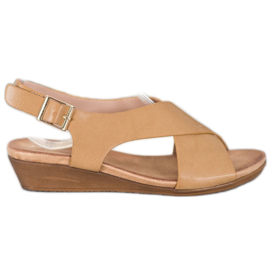 Små svansandaler har en 4 cm hög kil, vilket tillför subtil elegans och samtidigt säkerställer komfort när du går. Tack vare den släta plastsulan är skorna stabila och nötningsbeständiga. I en minimalistisk, beige färg matchar dessa sandaler perfekt olika nyanser och mönster av kläder och skapar harmoniska kombinationer i sommarstyling.