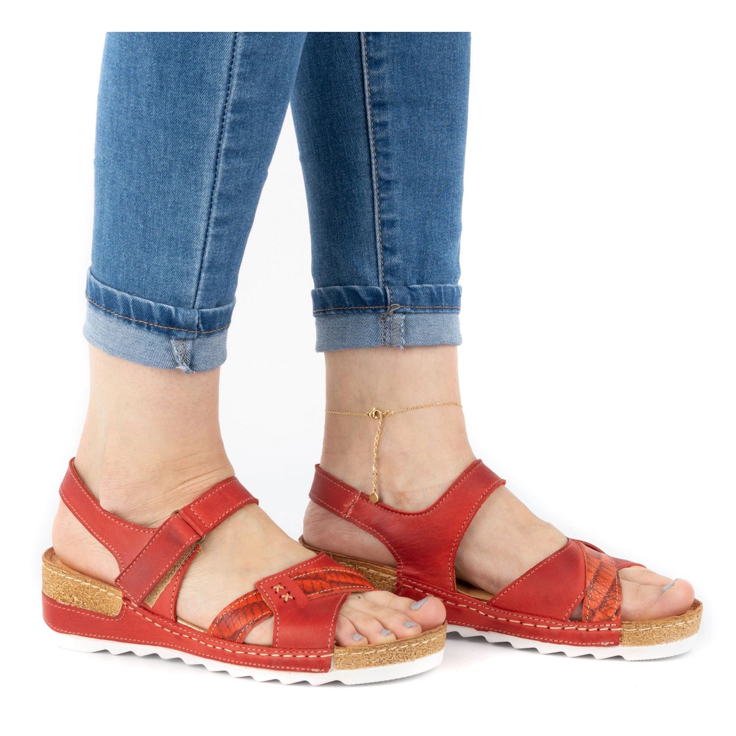 WASAK WASAK Bekväma damsandaler i läder 0620W röd