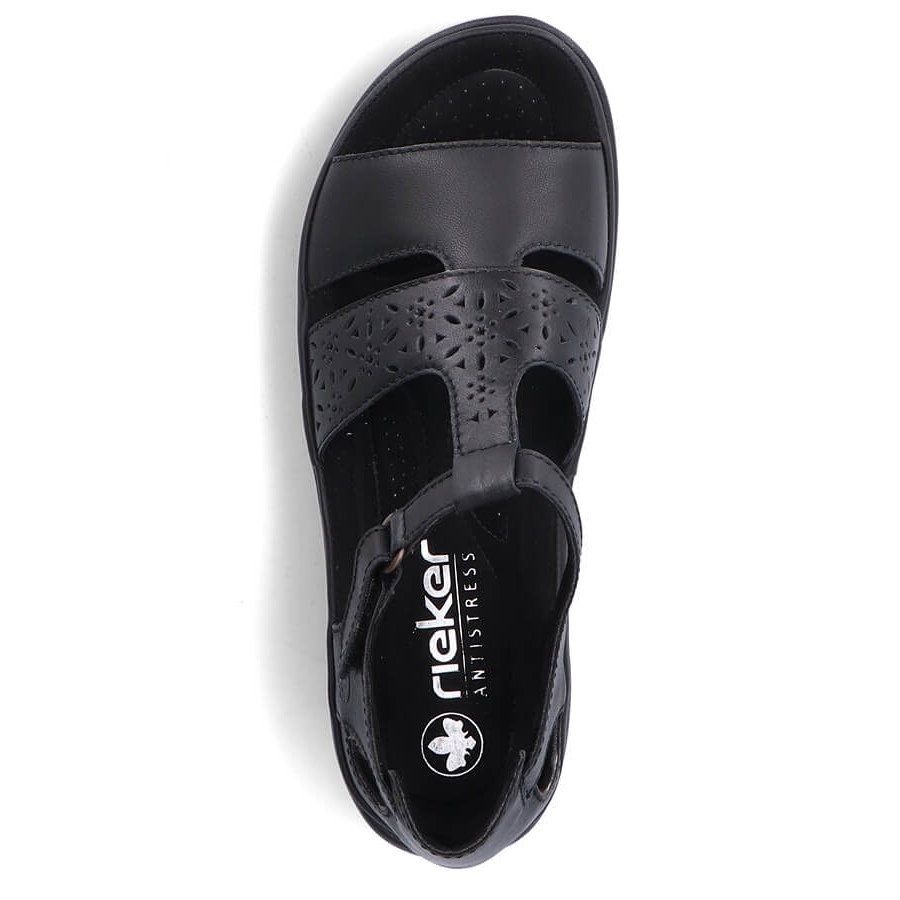 Detaljer: Bekväma damsandaler i skinn med kardborreband, svart Rieker 64865-01