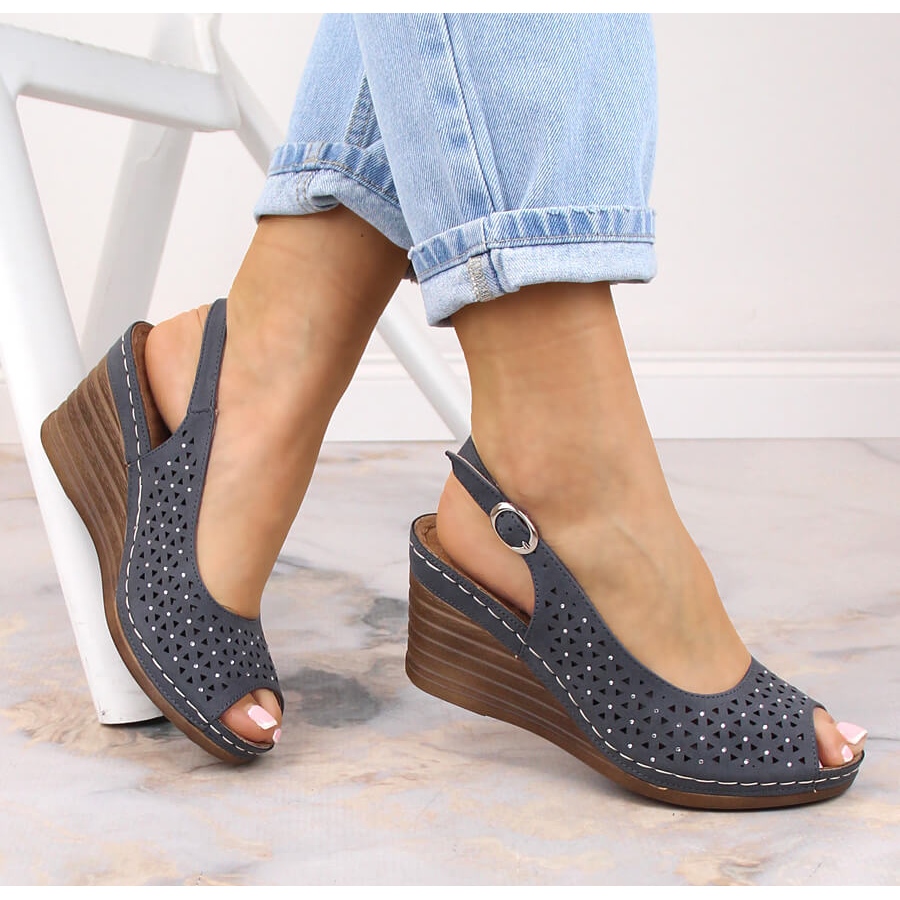 Detaljer: Bekväma damsandaler på kilen med zirkoner marinblå eVento 0972