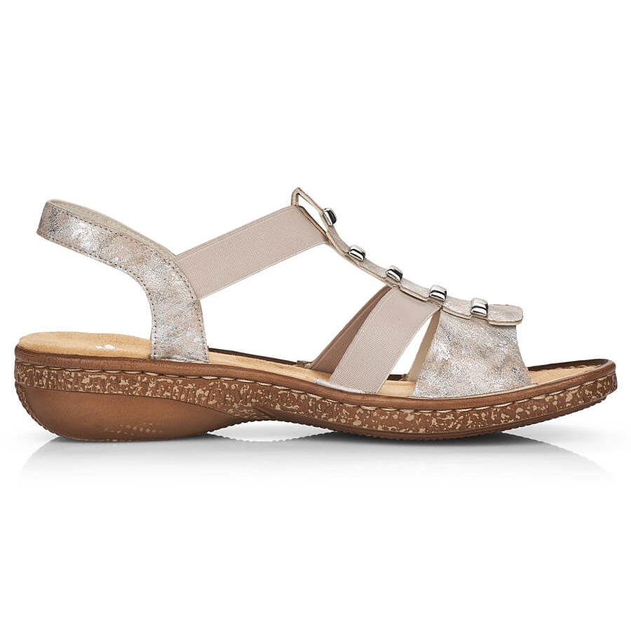 RIEKER 62850-90-KOMMANTABLE KVINNA SANDALER (Beige/Metallic)