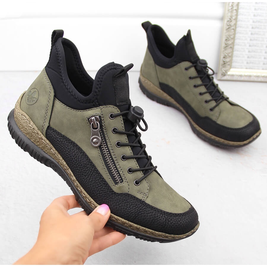 Detaljer: Bekväma damskor, gröna sneakers Rieker N32G3-54