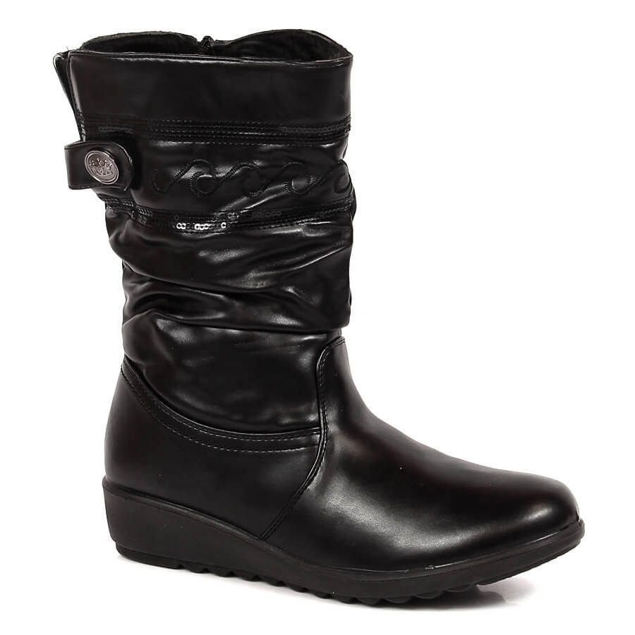 Detaljer: Bekväma damstövlar, skrynkliga, isolerade svarta Sabatina