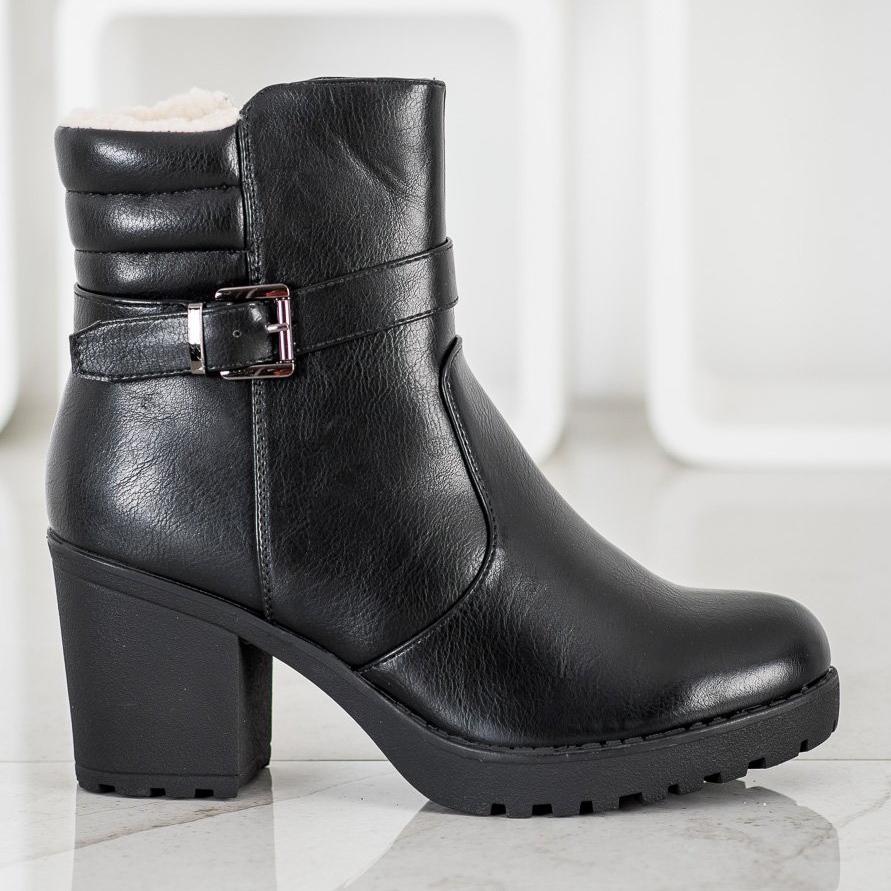 J. Star ankelboots har en 8 cm hög klack, vilket kommer att framhäva din figur och säkerställa stabilitet. Den höga överdelen över ankeln och dragkedjan gör den lätt att ta på, och det dekorativa spännet ger en unik karaktär. Interiören gjord av textilmaterial ger extra isolering, vilket gör dessa stövlar till ett utmärkt val för kalla dagar.