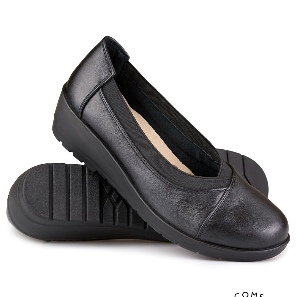 Information: Bekväma elastiska damskor gjorda av ekoläder svart