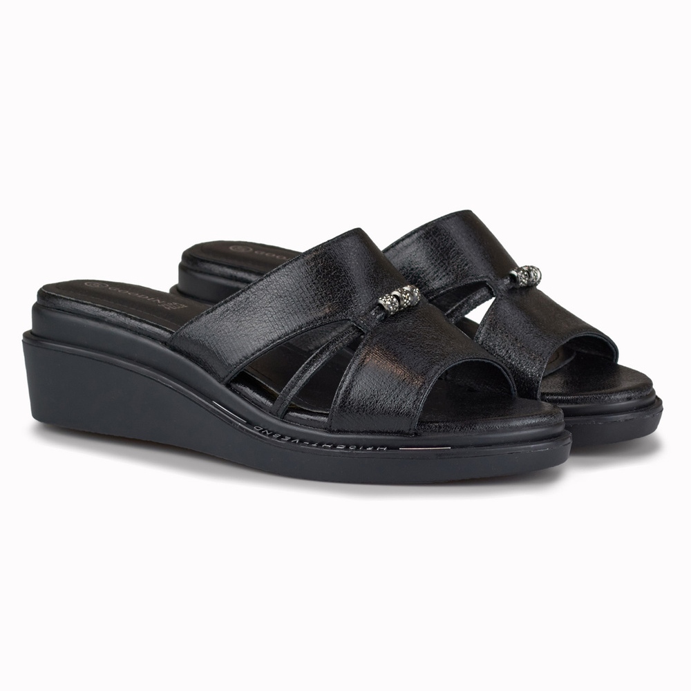 Information: Bekväma eleganta wedge tofflor för kvinnor svart