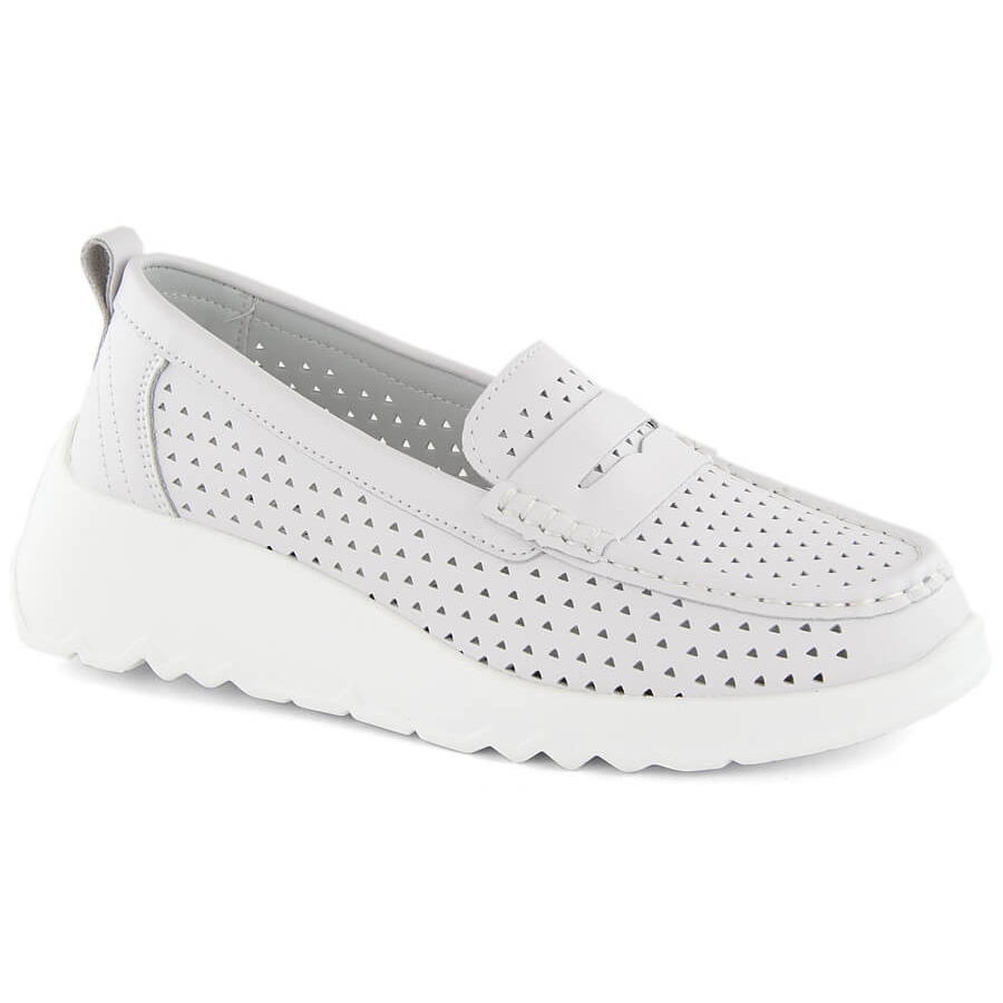 Detaljer: Bekväma genombrutna läderskor för kvinnor, vita S.Barski LR509