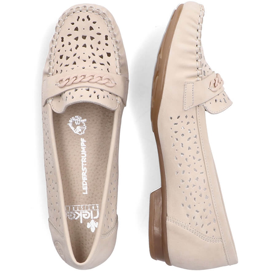 Detaljer: Bekväma genombrutna loafers för dam Rieker 40068-60 beige
