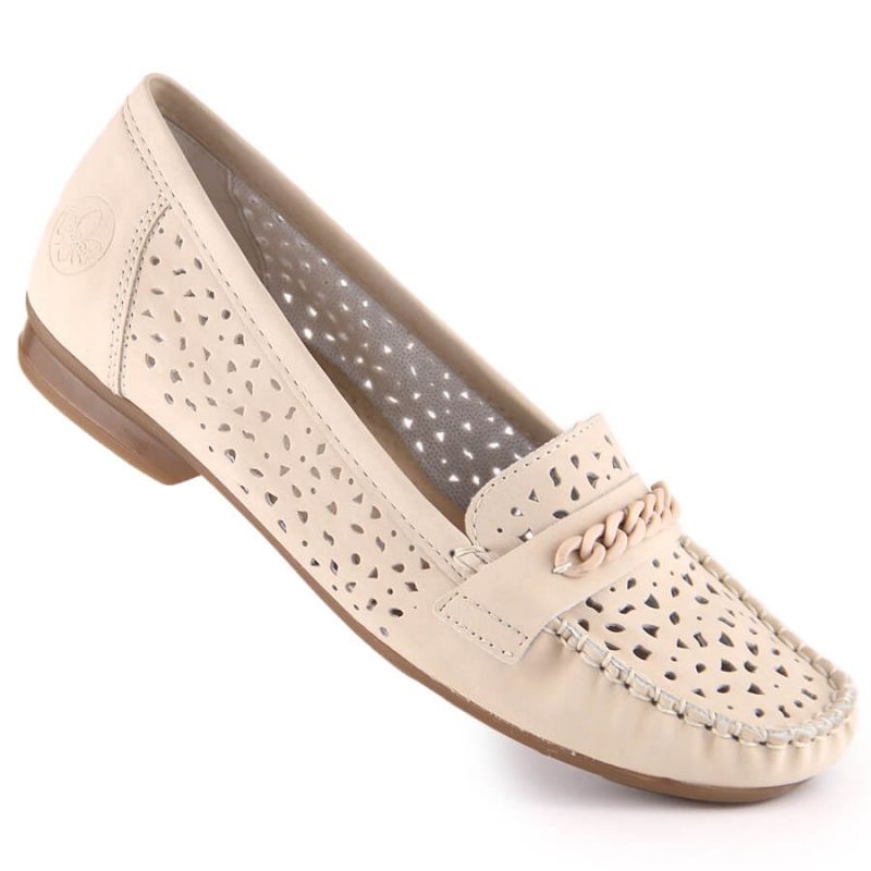 Detaljer: Bekväma genombrutna loafers Rieker W 40068-60 beige