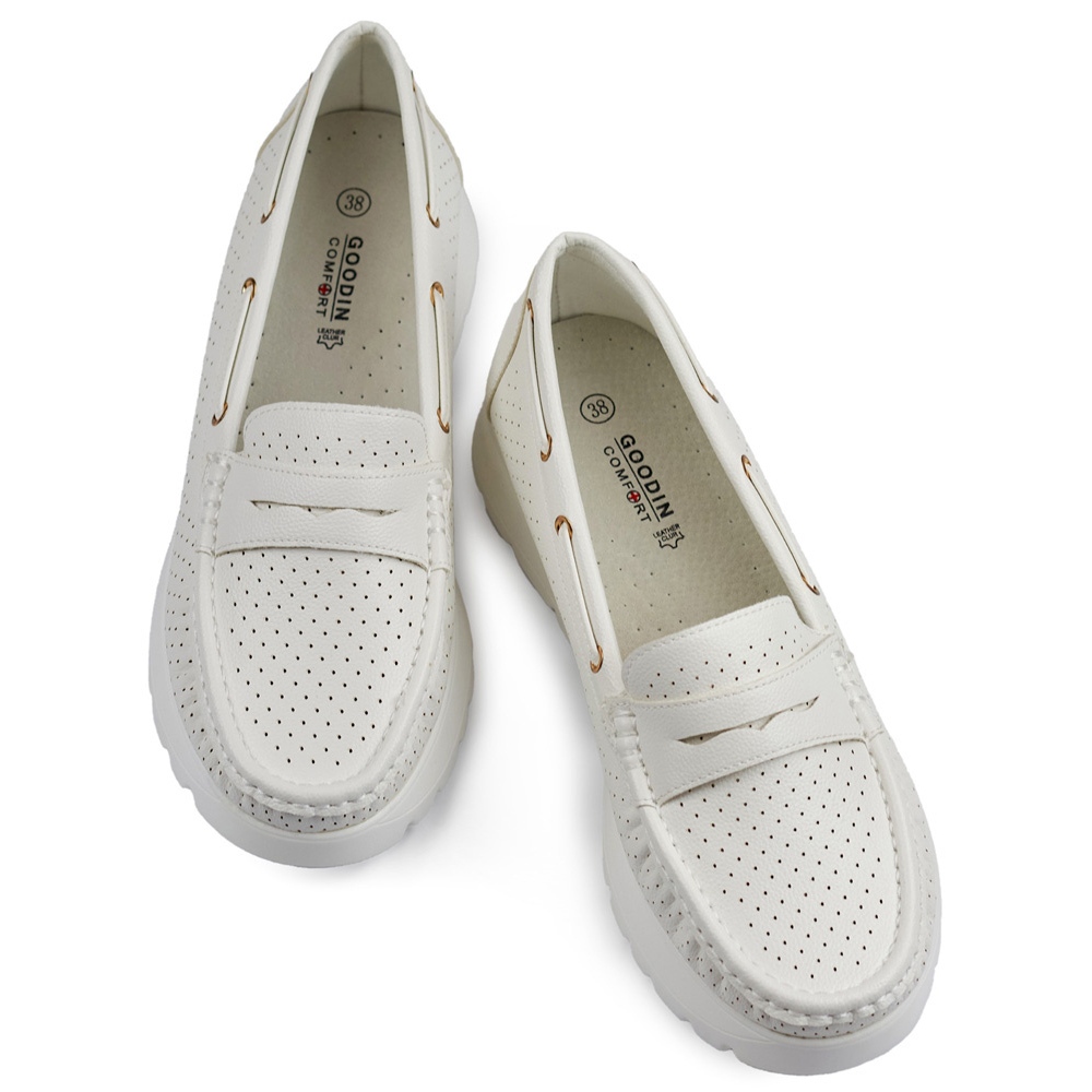 Inna marka Bekväma genombrutna vita dammockasiner med innersula i läder