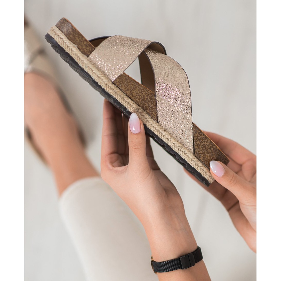 Goodin guldflipflops är det perfekta valet för sommardagar, som kombinerar elegans och komfort och är perfekta för vardagsstyling. Avslutade med metallisk glans framhäver dessa flipflops vackert din solbränna, vilket gör att dina ben ser ännu mer attraktiva ut.