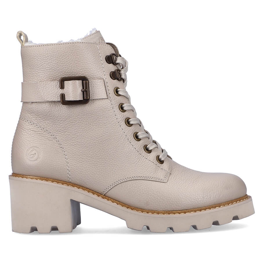 Information: Bekväma, isolerade högklackade stövlar i läder, beige Remonte D0A74-60