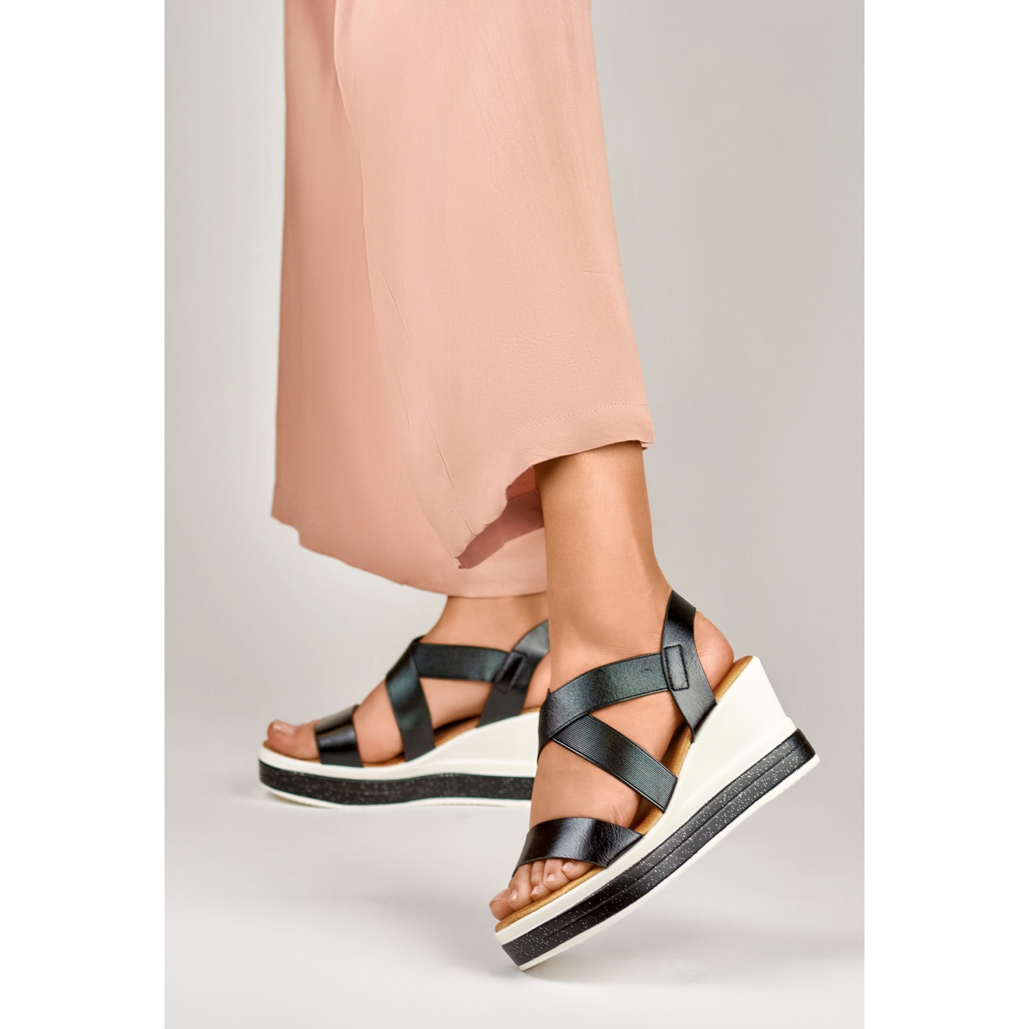 Inna marka Bekväma kilsandaler med svarta remmar