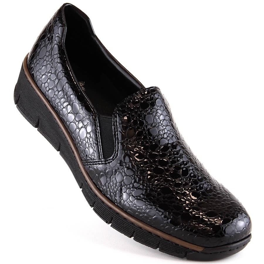 Detaljer: Bekväma lackade dam stegsvarta skor Rieker 53766-45