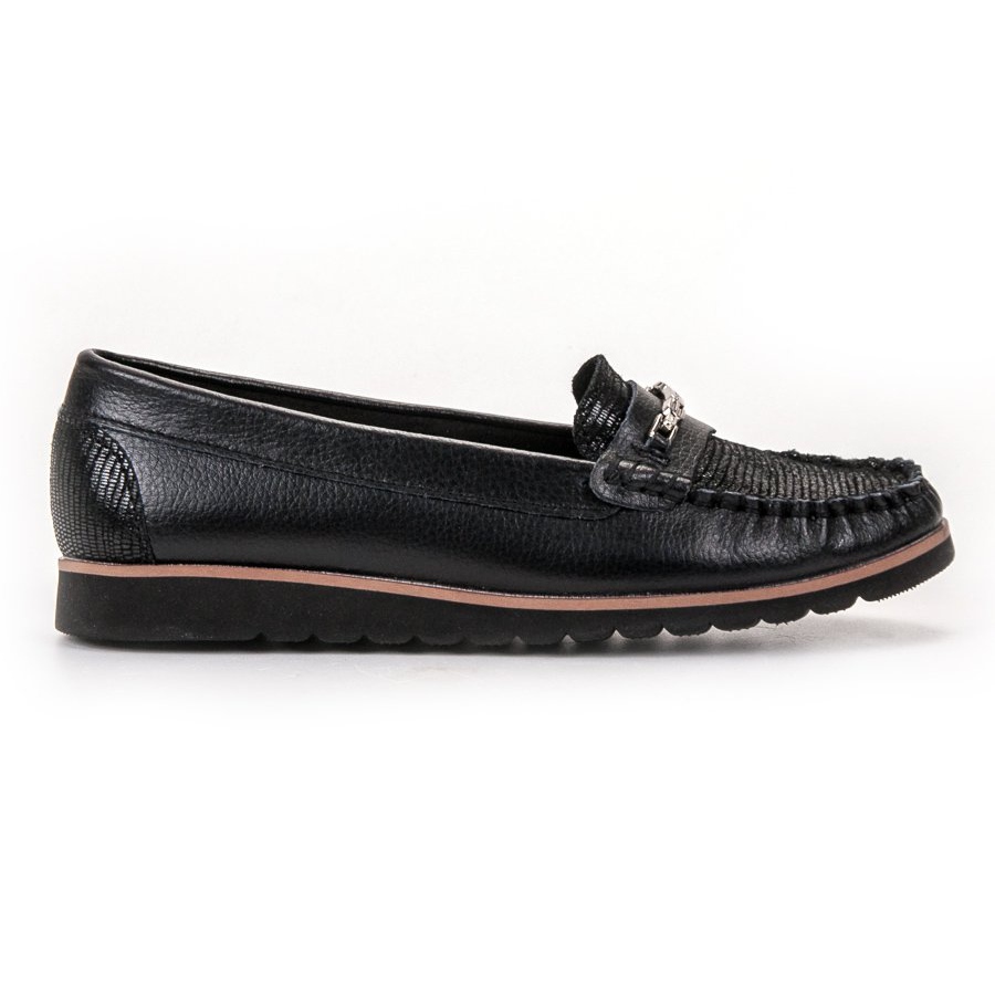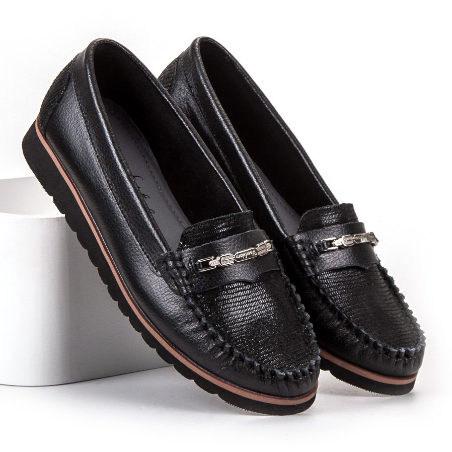 Filippo bekväma lädermockasiner, svarta, är ett idealiskt förslag för kvinnor som värdesätter elegans och komfort varje dag. Dessa klassiska mockasiner är gjorda av högkvalitativt naturligt läder, vilket säkerställer en perfekt passform till foten och effektivt transporterar bort fukt, vilket säkerställer komfort när de bärs under långa perioder.