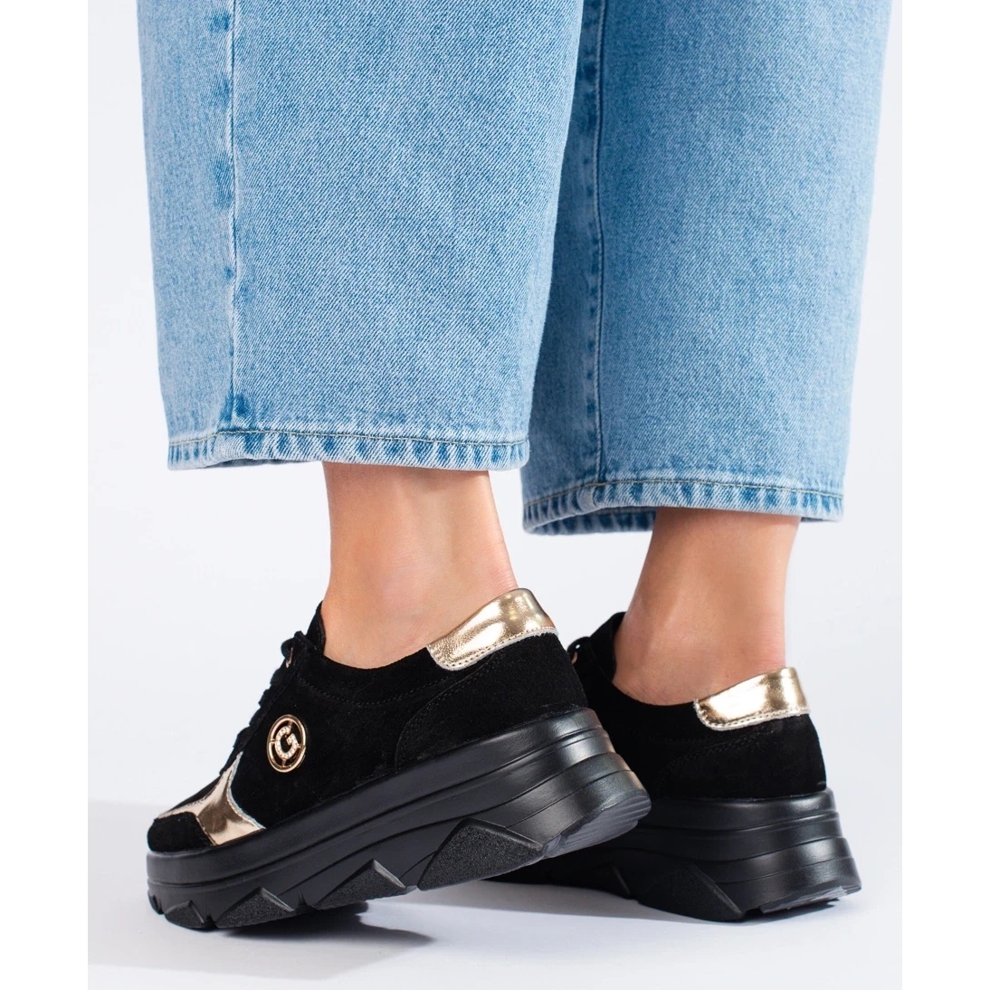 Detaljer: Bekväma lädersneakers för kvinnor svart