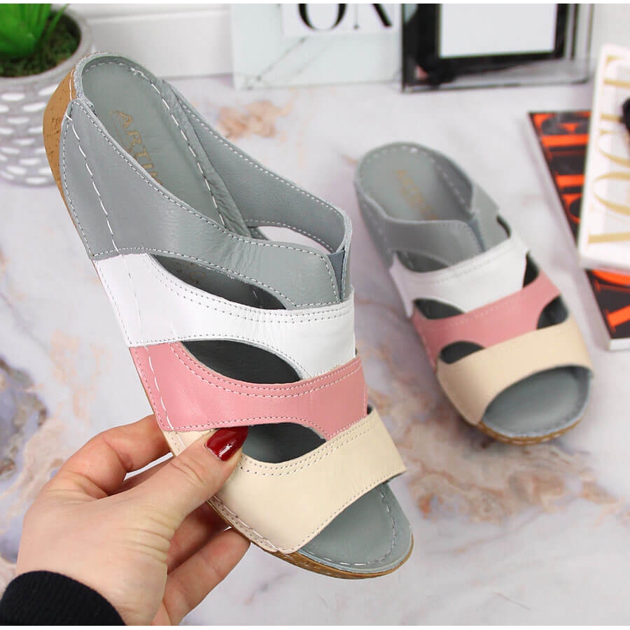 ARTIKER Bekväma lädertofflor för kvinnor i flerfärgad Artiker grå mångfärgad