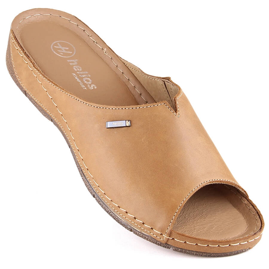 Helios Bekväma lädertofflor för kvinnor med elastiskt band ljusbrun Helios 105 beige