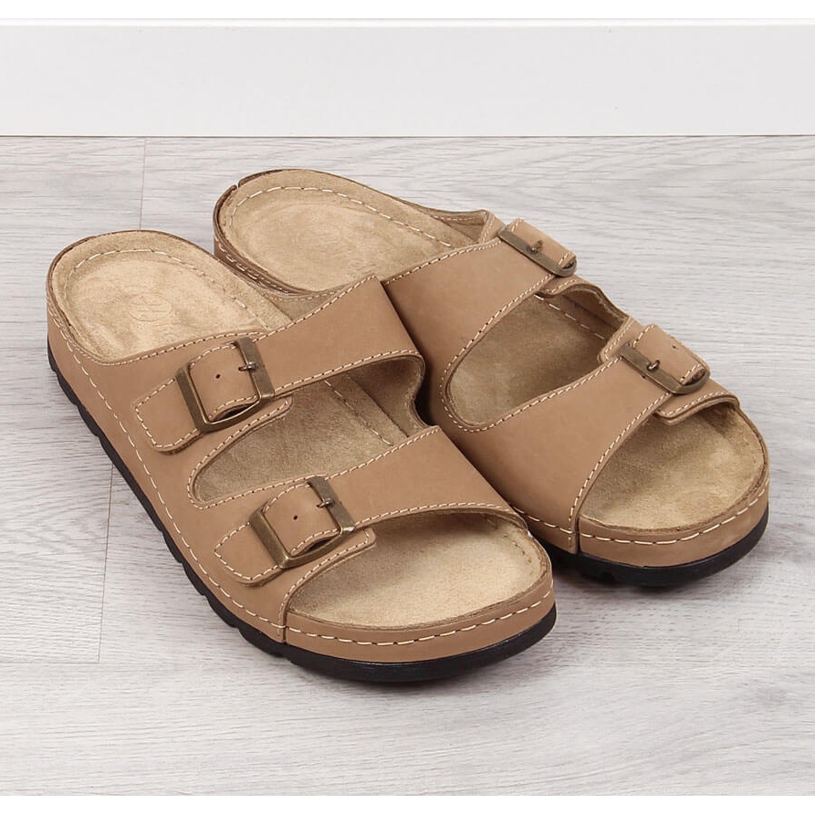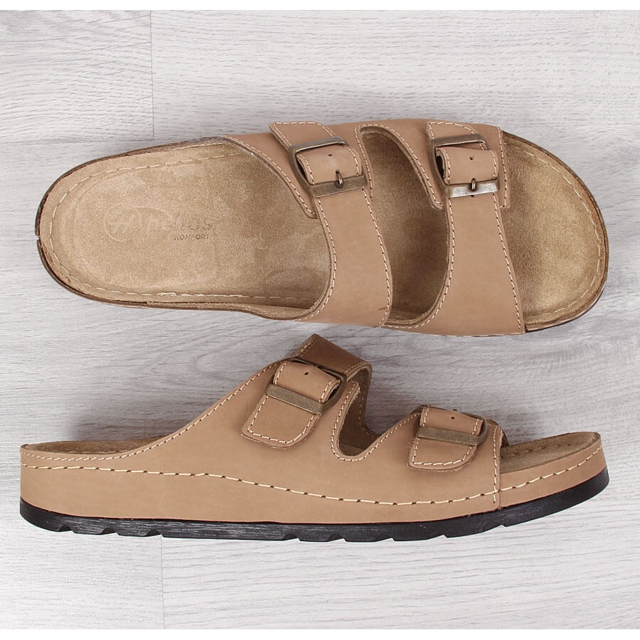 Detaljer: Bekväma lädertofflor för män beige Helios 813