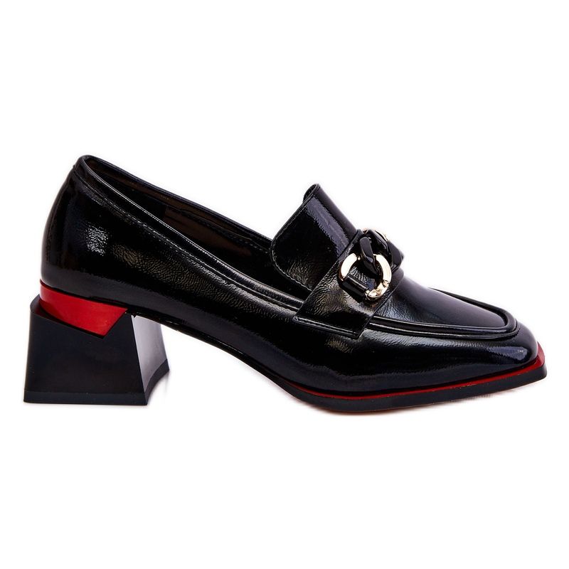 Eleganta och bekväma pumpar med en universell, tidlös snitt - idealisk för kontor och utgångar. Modellen "Valenti" kombinerar en klassisk form med en modern, lackerad finish och en subtil dekoration i form av en plastkedja. En låg, stabil klack i blocket och en mjuk insats av naturläder säkerställer komfort under dagen, och den styvade hälen stabiliserar foten när du går.