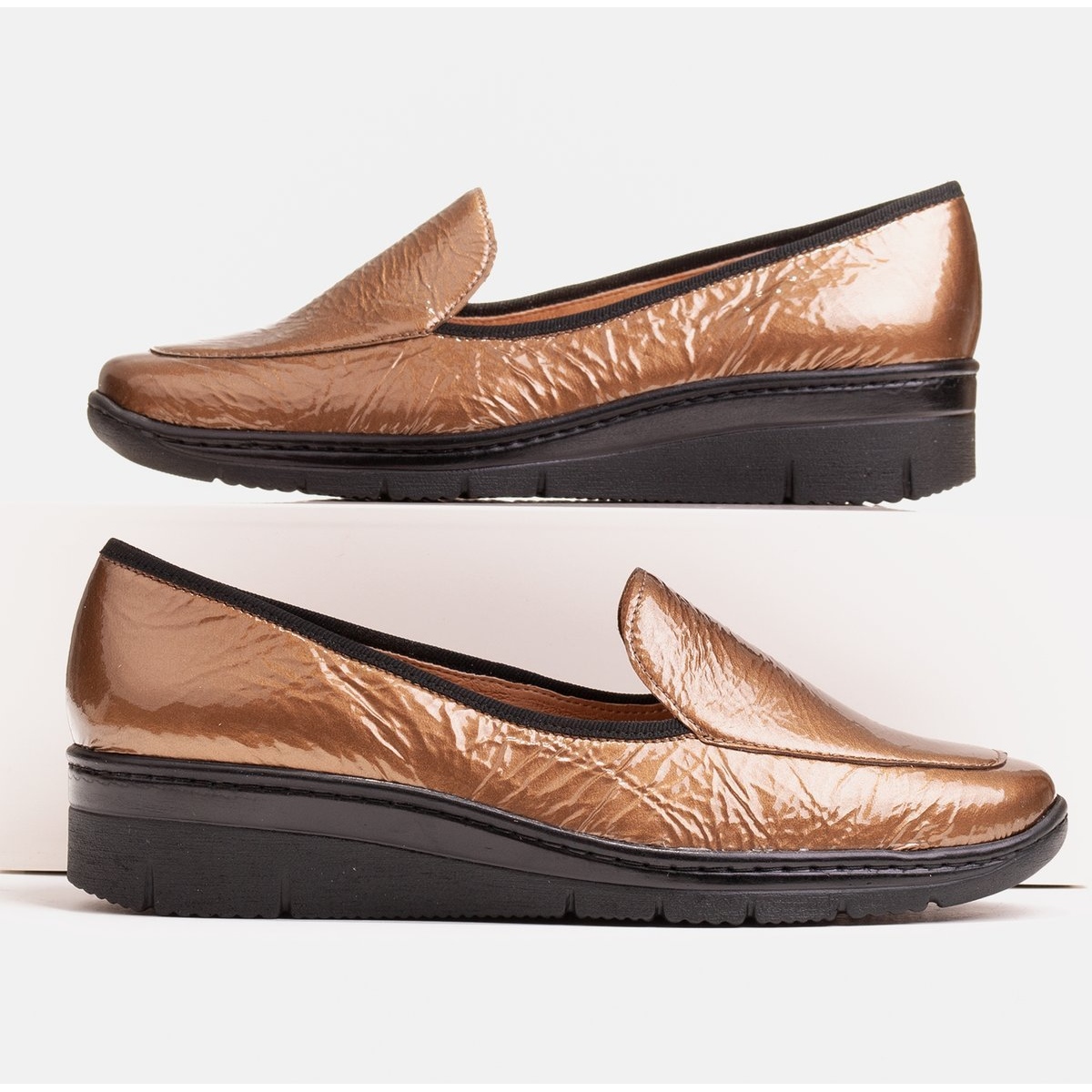 Detaljer: Radoskór Bekväma lågklippta mockasiner på en låg kil för en bredare fot gyllene