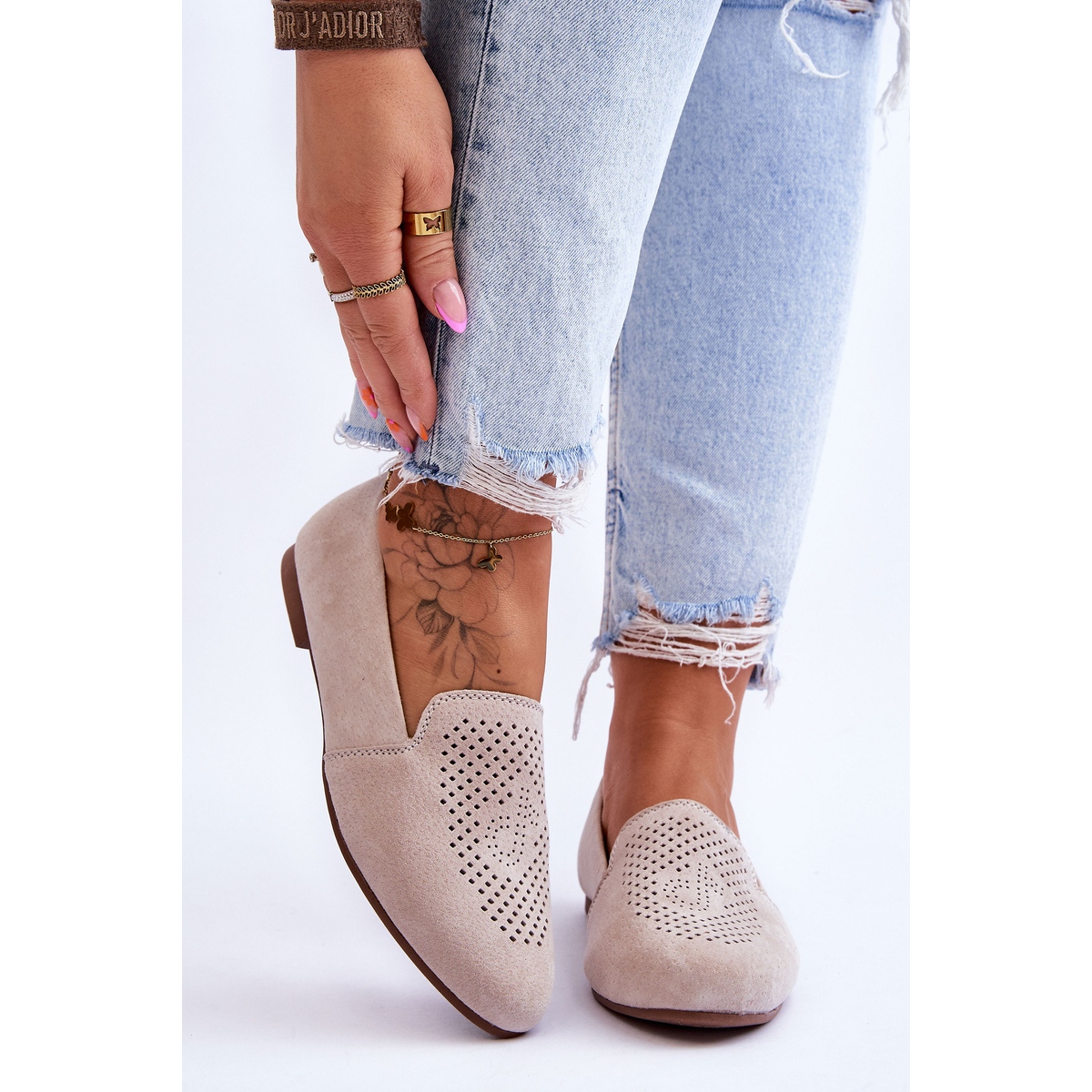 S. Barski Giovana - Beige Loafers gjorda av naturlig mocka, som kombinerar elegans med vardagens komfort. Ett känsligt, öppetwork -mönster på framsidan ger dem lätthet och subtil karaktär, tack vare vilken de är fantastiska för kontoret och i stadsstyliseringar. Modellen är inbäddad på en platt häl (1 cm) med en icke -slip, syntetisk sula och en något förstyvad häl säkerställer stabilitet under varje steg.