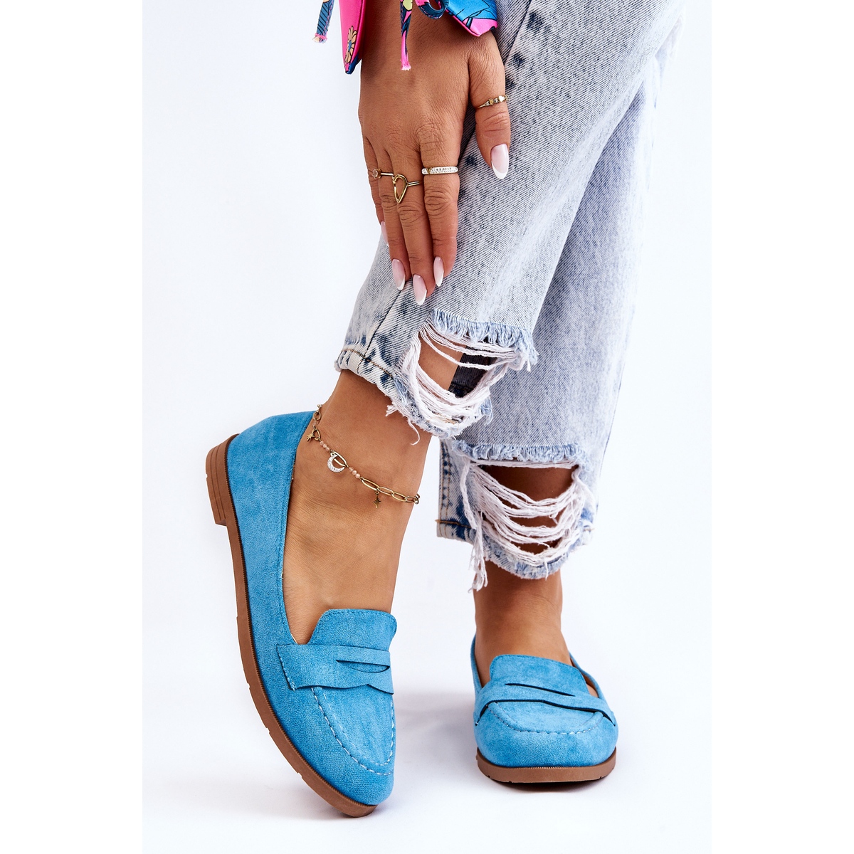 Lucca mockasiner i blått passar perfekt till olika stilar – från vardagsjeans till eleganta klänningar. Tack vare dem kommer du att skapa ett moderiktigt och bekvämt utseende utan någon ansträngning. Lägg märke till den klassiska övre höjden på 6 cm, som tillför subtil charm.