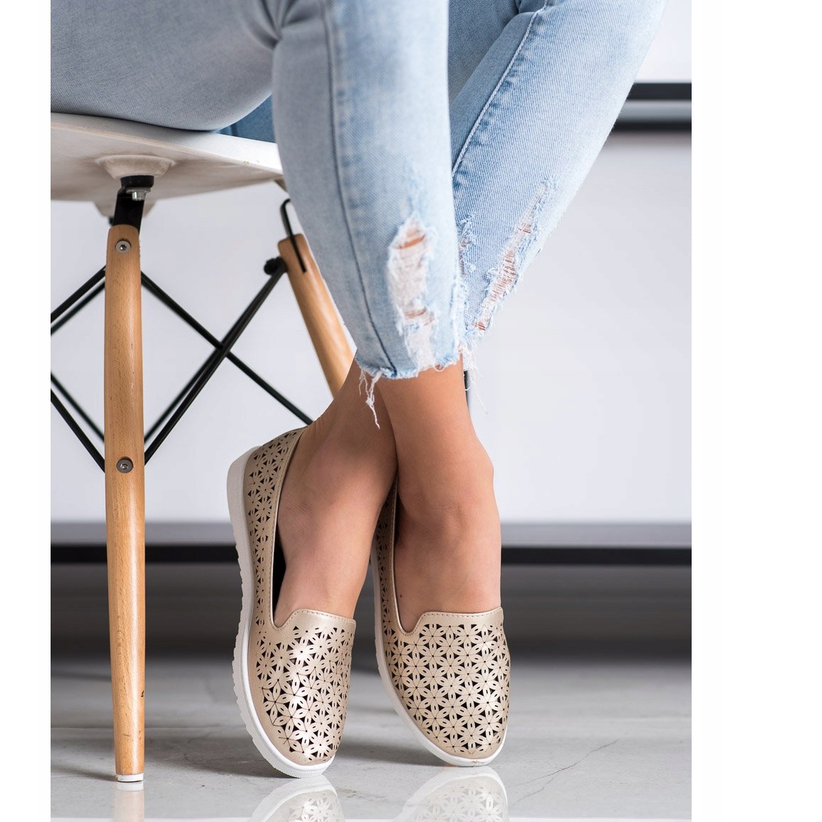 Upptäck elegans och komfort med sommarens Renda-herrar i guld. Dessa bekväma genombrutna balettlägenheter är det perfekta valet för varje kvinna som vill kombinera stil med vardagskomfort. De skapades för vår- och sommarsäsongen, vilket gör dem till ett perfekt komplement till många avslappnade stilar.