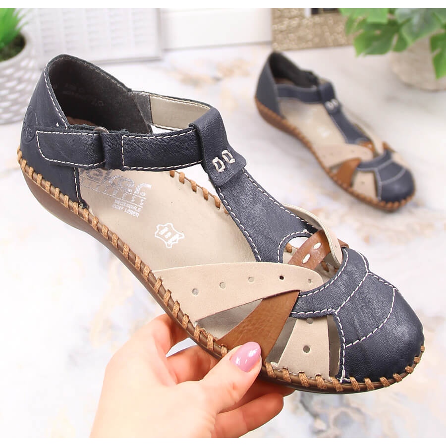 Detaljer: Bekväma platta damsandaler med kardborre Rieker M1655-14 beige