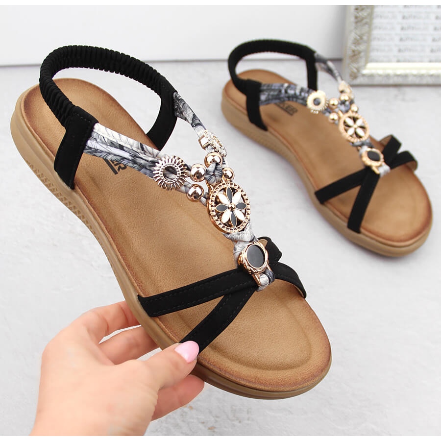 Sandaler är tillverkade av högkvalitativt organiskt läder och kännetecknas av ett elegant, klassiskt snitt som perfekt passar in i nuvarande trender. Deras minimalistiska svarta färg gör att de passar praktiskt taget alla styling, från avslappnad till mer formell. Ytterligare accenter i form av zirkoner och strass ger dem en original karaktär och skiljer dem från andra modeller.