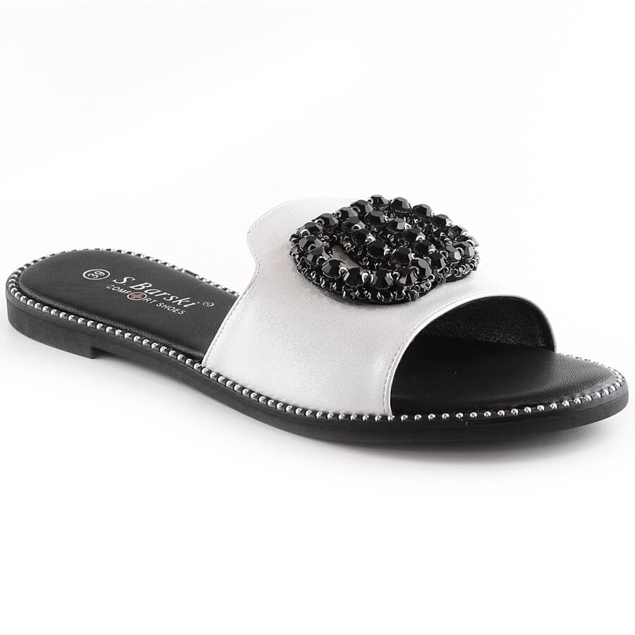 Bekväma platta tofflor för kvinnor med zirkoner silver S.Barski Kv 520-30