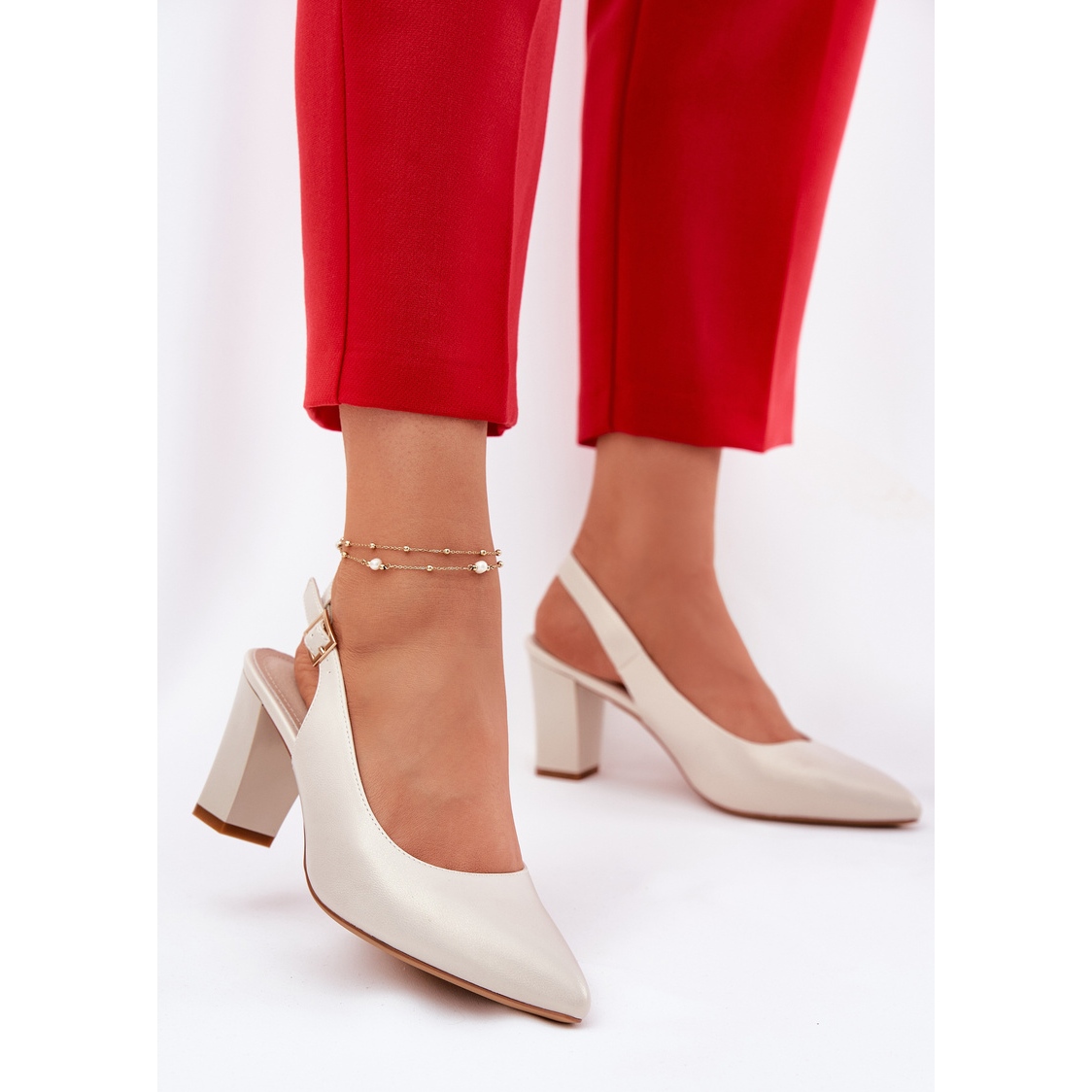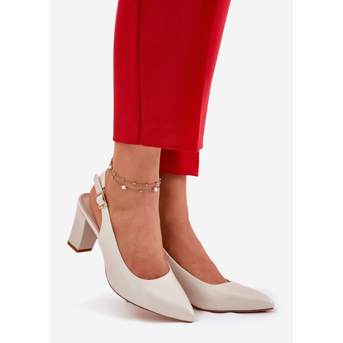 Dessa pumpar är inbäddade på en 7,5 cm hög stabil stolpe, som ger tillräckligt stöd och komfort när de bär. Tack vare det justerbara bältet med ett spänne kommer du perfekt att matcha dem till din fot, och den öppna hälen ger dig lätthet och friskhet i styling.