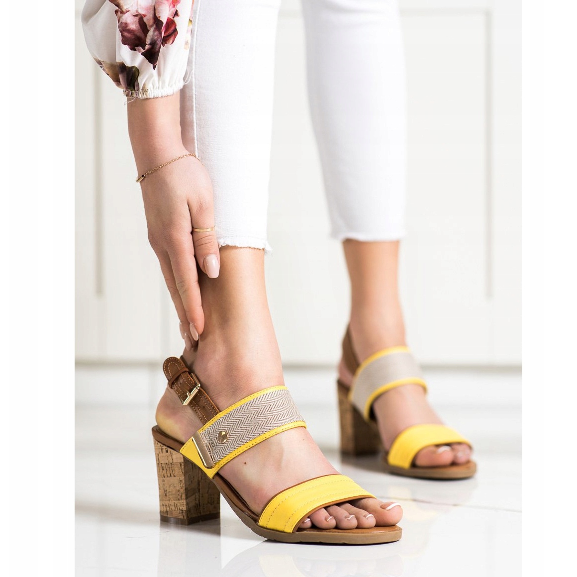 Upptäck unika högklackade sandaler från märket Evento som kommer att tillföra en frisk fläkt till din sommargarderob! Dessa snygga skor är inredda i glada gula och bruna färger och är det perfekta valet för varma dagar när du vill kombinera komfort med en elegant look.