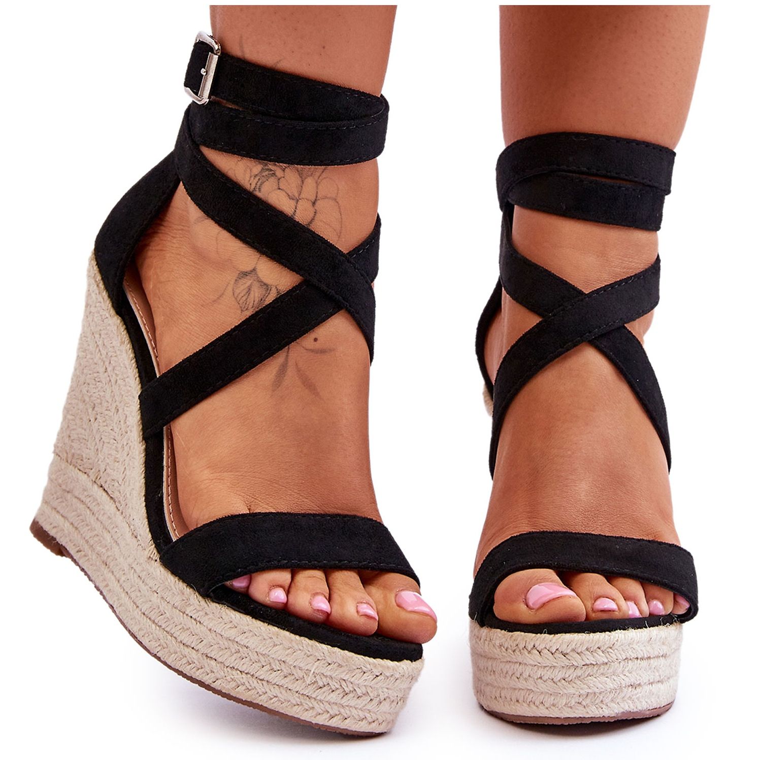 Detaljer: FJ1 Bekväma sandaler på en hög kil Svart Lemira
