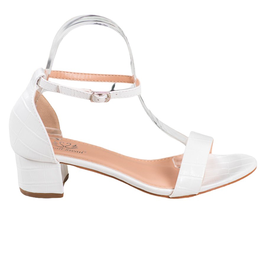 Letar du efter eleganta och bekväma sandaler för vår- och sommardagar? Små Swan lågklackade sandaler i en universell vit färg är ett perfekt val som säkert kommer att dra till sig uppmärksamhet!