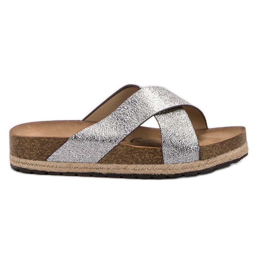 Upptäck komfort och elegans med Goodin silverflipflops. Dessa eleganta flip-flops för kvinnor är det perfekta vardagsvalet, som kombinerar klassisk design med moderna accenter. Tillverkade av ekologiskt läder, de garanterar komfort att bära hela dagen, och deras öppna häl gör dem lätta att ta på.