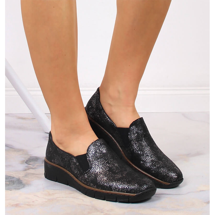 Detaljer: Bekväma slip-on skor med elastiska band Rieker W RKR166B svart