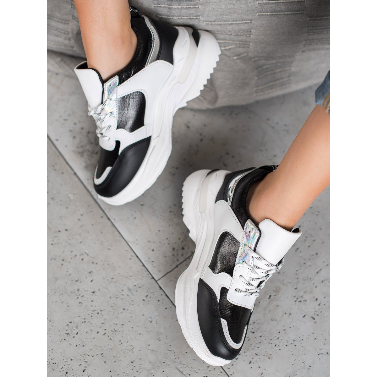 Detaljer: SHELOVET Bekväma sneakers på plattformen vit svart