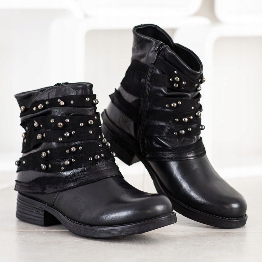 Detaljer: Queentina Bekväma stövlar med dekorationer svart