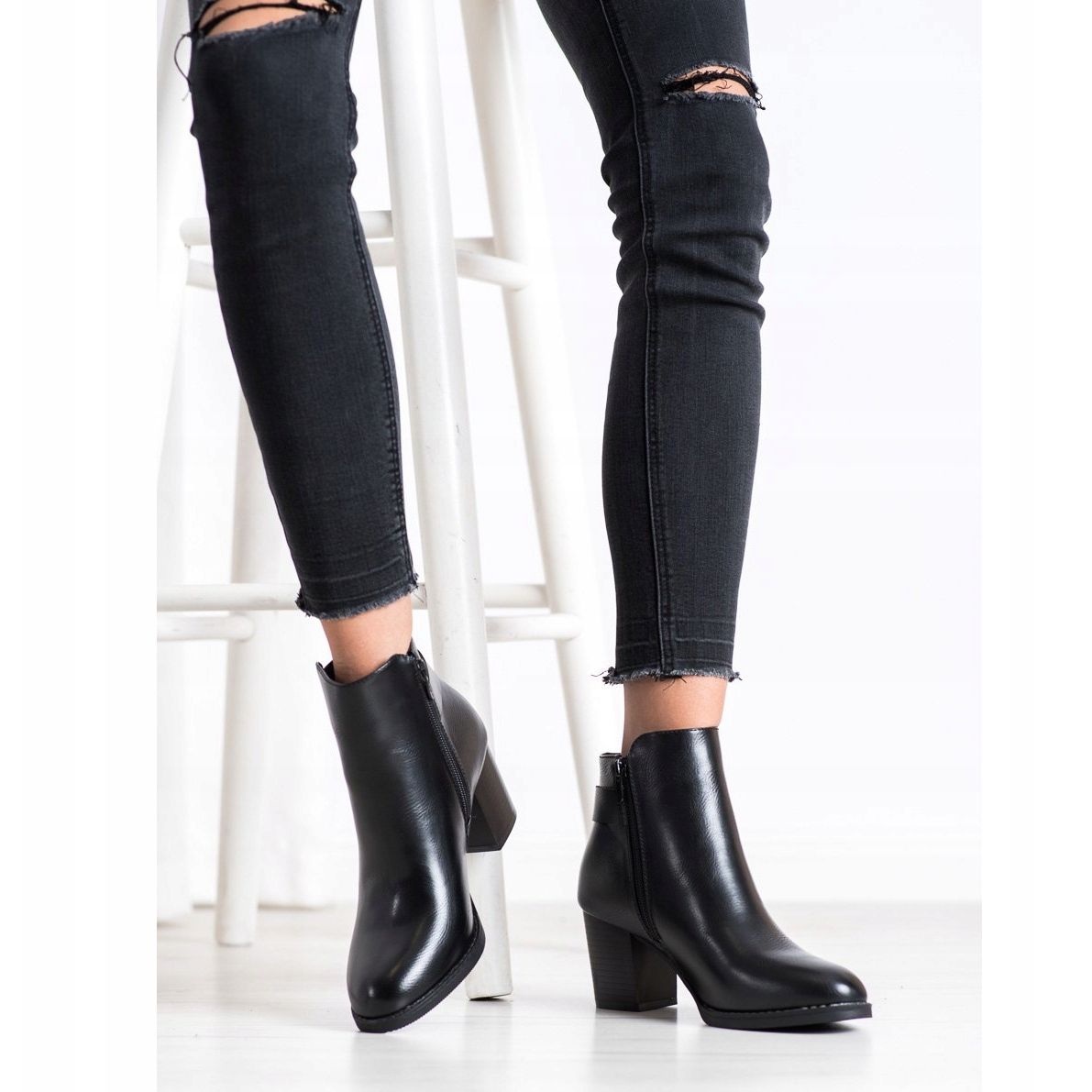 J. Star-stövlar har en 7-centimeters klack i form av ett block, vilket garanterar komfort vid varje steg, samtidigt som det tillför elegans till varje styling. Den dekorativa remmen är en subtil detalj som väcker uppmärksamhet och framhäver skons fashionabla karaktär. Tack vare plastsulan med slitbana kan du njuta av ett säkert steg och bra grepp på olika underlag.