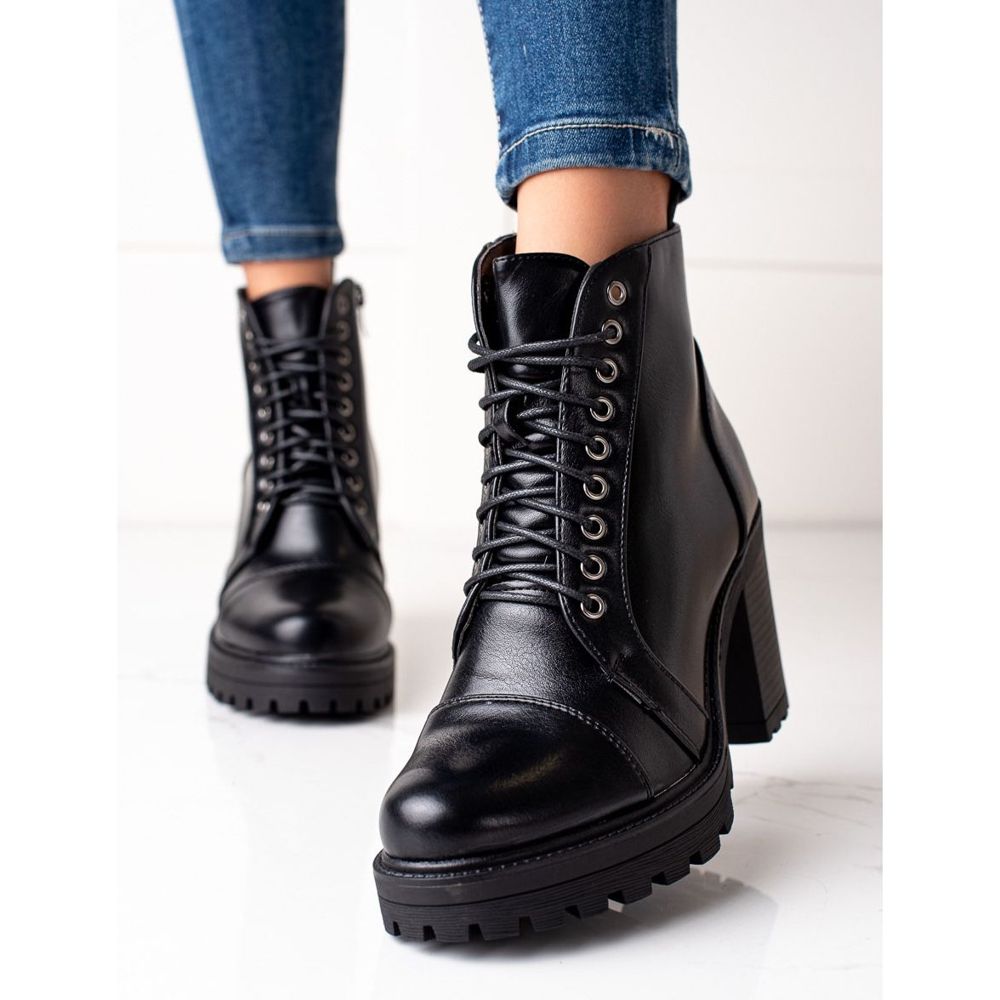 Vi presenterar bekväma högklackade ankelstövlar från tillverkaren Sweet Shoes - det perfekta valet för varje kvinna som letar efter elegans och komfort varje dag. Dessa svarta ankelboots är essensen av avslappnad stil, perfekta för både vardagsutflykter och kvällsfester.