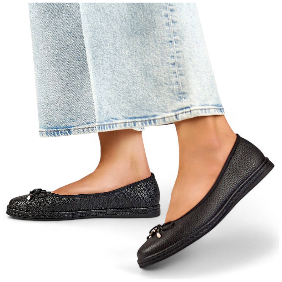 Tack vare bågarna kännetecknas ballerinas av en subtil, men samtidigt med en snygg accent, perfekt passande i modetrender. De smälter in väl i avslappnade stiliseringar, och deras klassiska svarta färg gör dem enkla att kombinera med olika kläder.