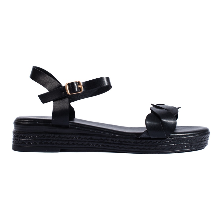 Shelvt sandaler finns i en klassisk svart färg, vilket gör att de matchar perfekt med en mängd olika stilar. Spännet gör att du kan ta på dig snabbt och bekvämt och det ekologiska lädinlägget säkerställer komfort även vid lång användning.