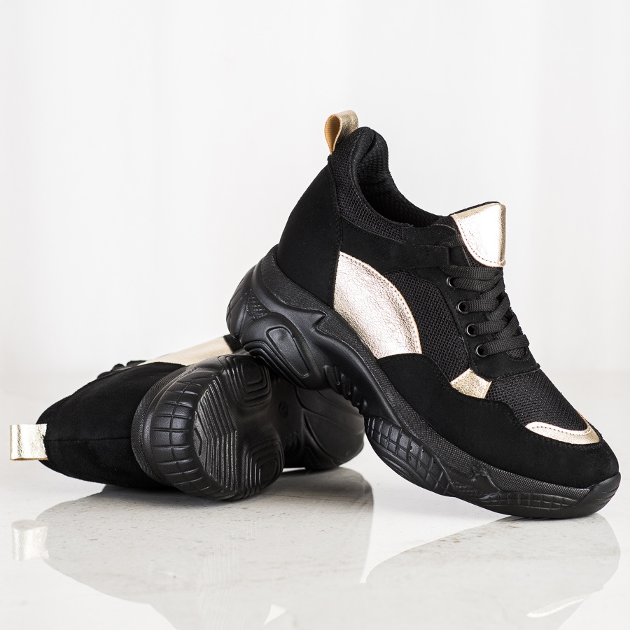 Detaljer: SHELOVET Bekväma SVARTA och GULD sneakers gyllene