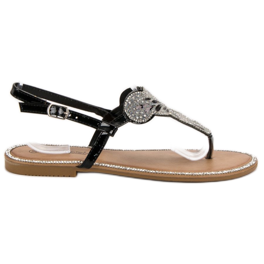 Silverkristaller som pryder dessa sandaler drar till sig uppmärksamhet och ger dem en unik karaktär. Tack vare deras klassiska snitt och platta klack kommer de att vara ett perfekt komplement till både en elegant klänning och vardagsbyxor. Komforten att bära säkerställs av en innersula av ekologiskt läder, och en syntetisk sula med slitbana garanterar stabilitet vid varje steg.