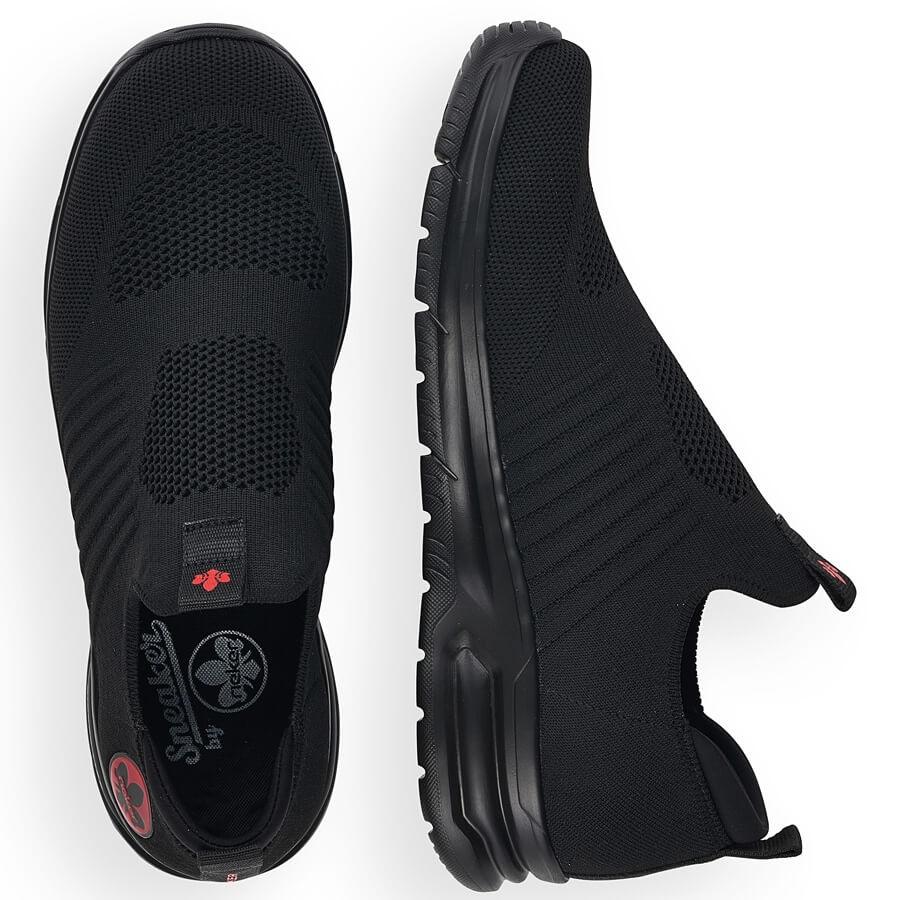 Detaljer: Bekväma svarta slip-on sportskor för män Rieker B7365-00