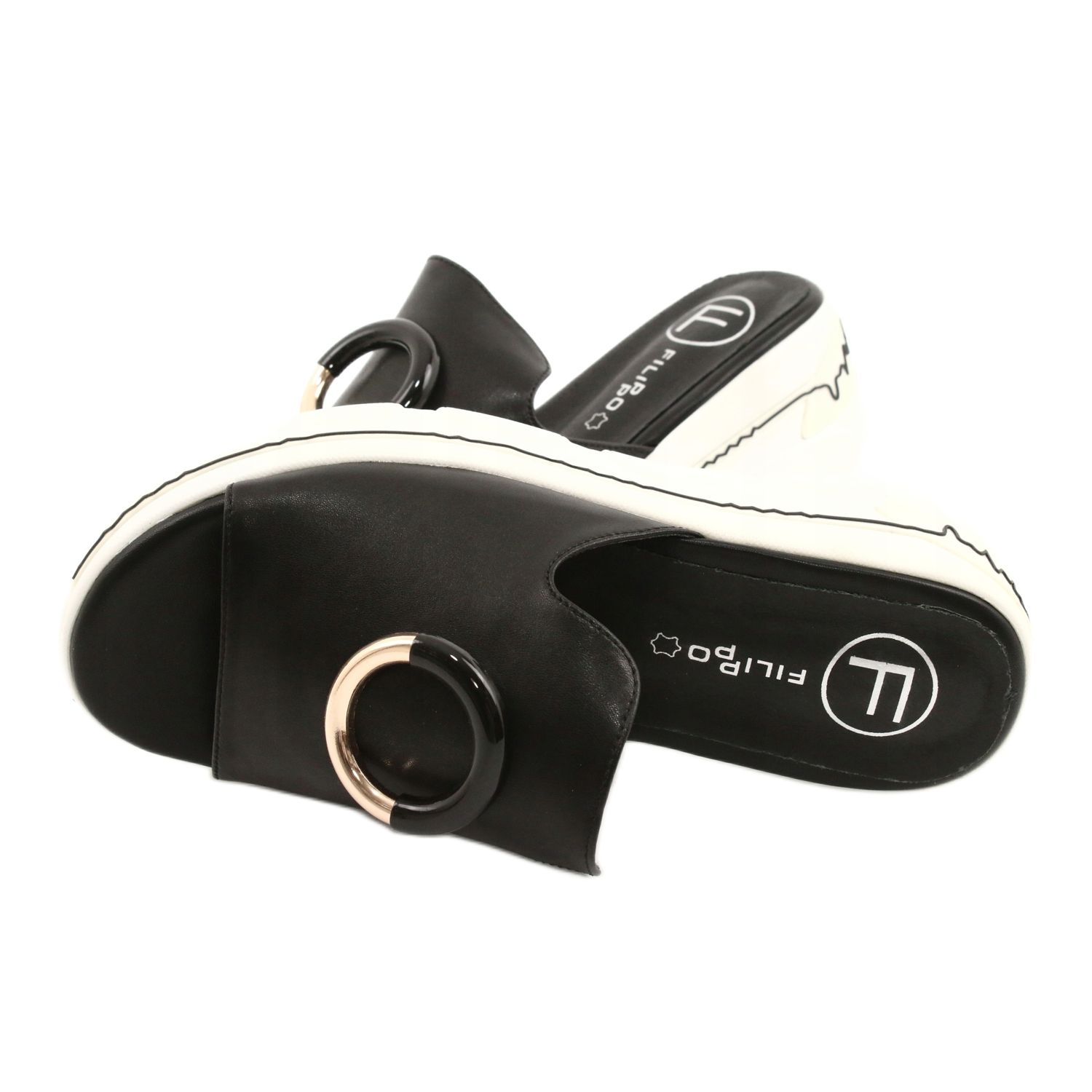 Detaljer: Filippo Bekväma tofflor på FILI PPO DK2318 / 21 BK -plattformen svart gyllene