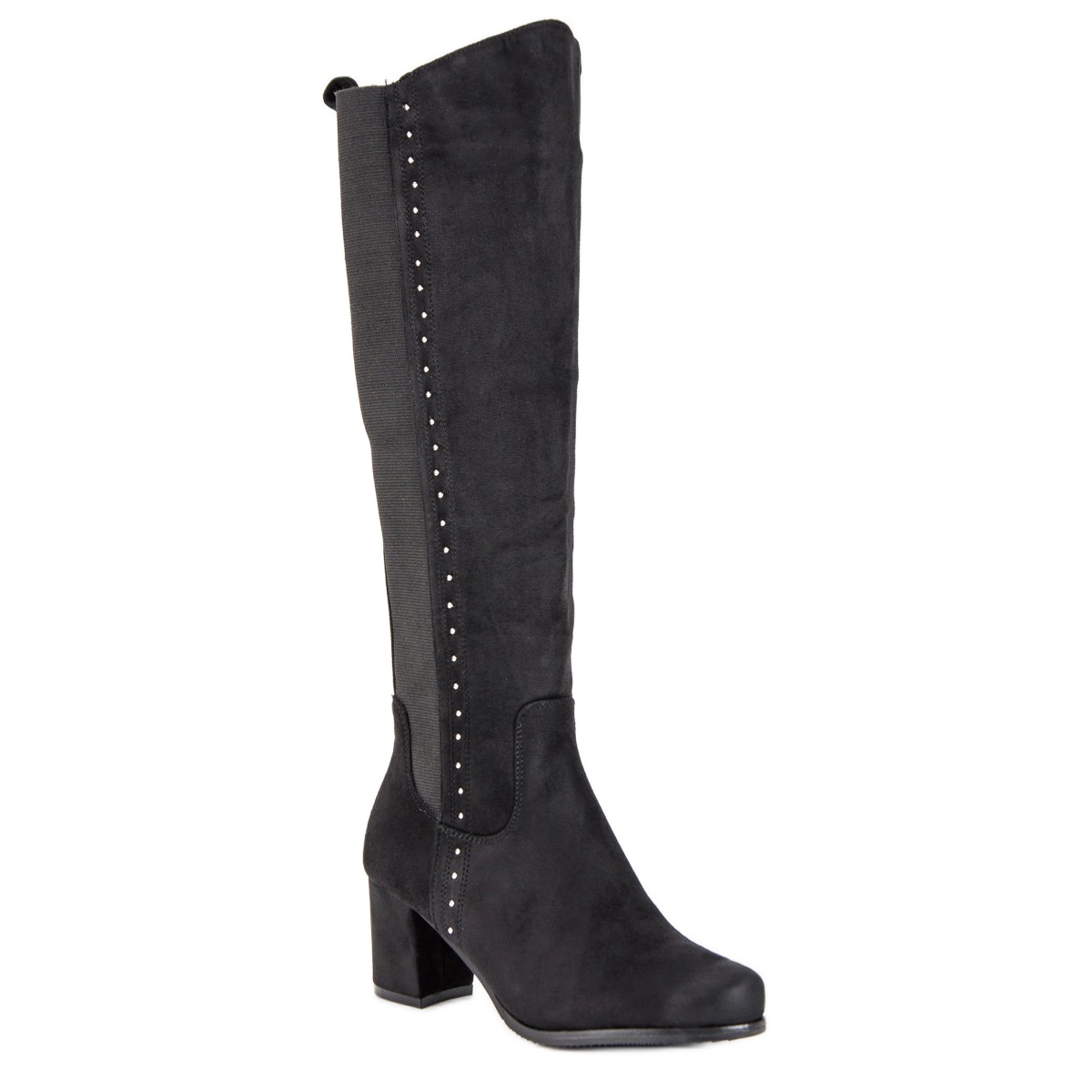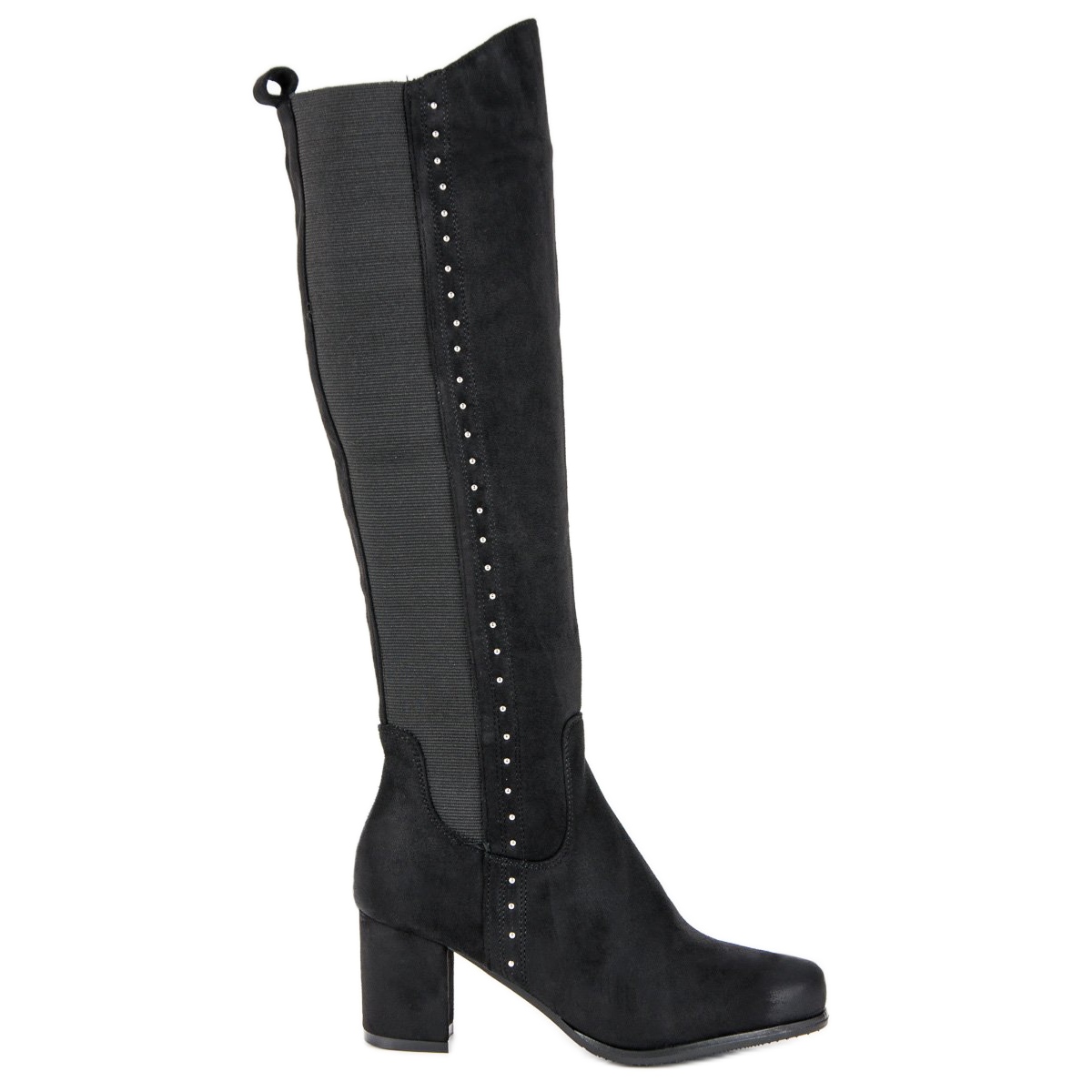 Upptäck elegans med svarta VINCEZA högklackade stövlar, som kommer att vara en perfekt match för alla dina stylingar. Dessa klassiska skor är gjorda av ekologisk mocka av hög kvalitet och imponerar inte bara med sin estetik, utan erbjuder också oöverträffad bärkomfort. Tack vare subtila kristalldekorationer får stövlarna en unik karaktär som perfekt matchar höst-/vintersäsongens trender.