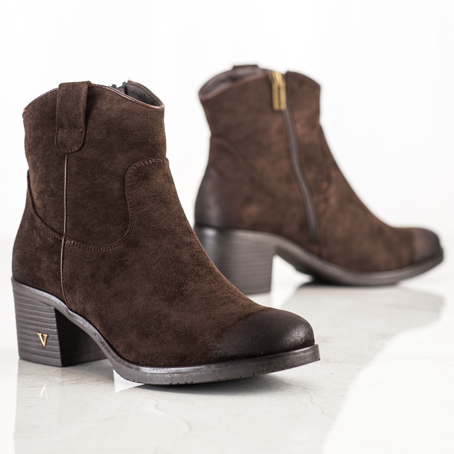 Vi presenterar bruna stövletter i mocka från Vinceza, som kommer att vara det perfekta komplementet till din höst- och vintergarderob. Dessa snygga skor är ett perfekt val både för vardagsbruk och för speciella tillfällen som fester eller utekvällar.